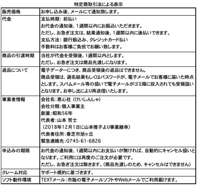 特定商取引法に関する表示についてご連絡を戴く前に次の事項をお守り下さい。